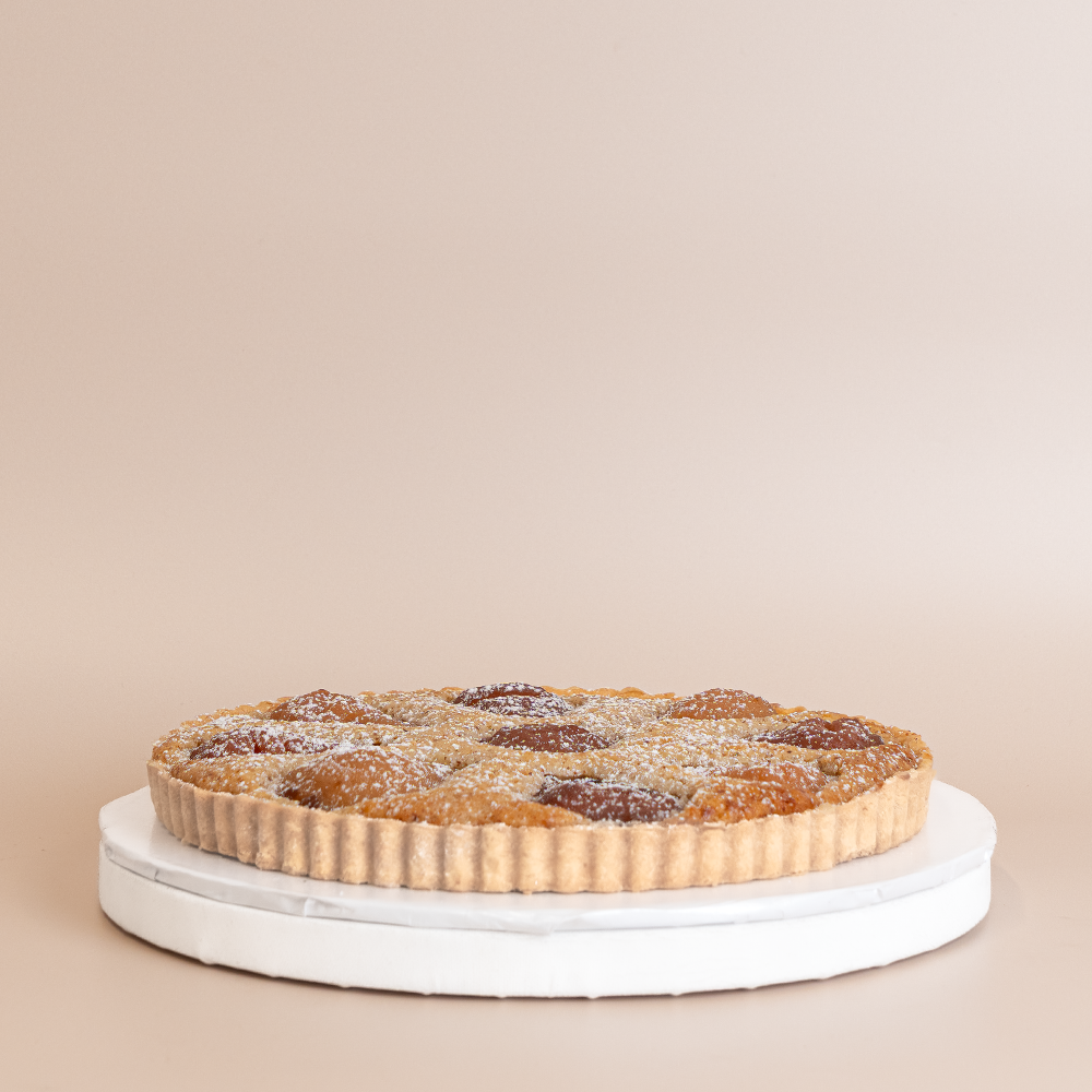 Butter pastry baked with rich frangipane filling and wine-poached pears